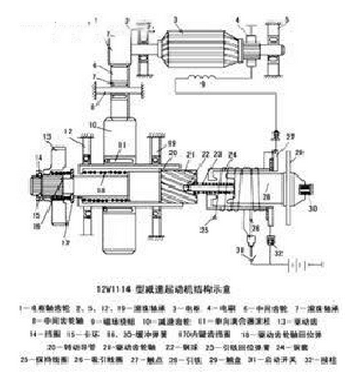 ①动力输出结构分为电枢轴和传动轴两部分。电枢轴两端用滚珠轴承支承,负荷分布均匀,使用时间长,不易磨损,电枢较短,不易出现电枢轴弯曲,磨坏磁场绕组的情况。