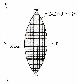我国坐标的规定:规定将每一带的坐标原点西移500km(图1—5),即每带的坐标原点x=0,y=500km,同时将该点所在的投影带带号加在横坐标前。