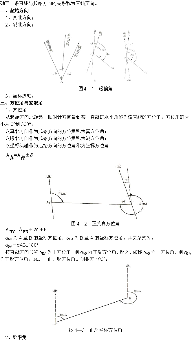 意义:确定两点在平面坐标中的相对关系时必须进行直线定向。