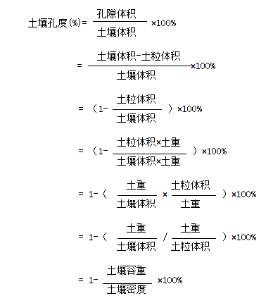 土壤孔度(%)=(1-土壤容重/土壤密度)×100%