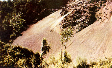 重力侵蚀是指斜坡陡壁上的风化碎屑或不稳定的土石岩体在重力为主的作用下发生的失稳移动现象,重力侵蚀多发生在深沟大谷的高陡边坡上。一般可分为泻流、崩坍(图4)、滑坡(图5)(slip ersion)和泥石流(图6)(block glacier)等类型。