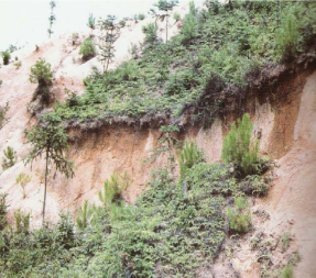吉林省肥沃的黑土层不断变薄,有的地方甚至全部侵蚀。四川盆地中部土石丘陵区,坡度为150-200的坡地,每年被侵蚀的表土达2.5cm,黄土高原强烈侵蚀区,平均年侵蚀量6000t/km2以上,最高可达两万吨以上。南方红黄壤地区以江西兴国县为例,平均年流失量5000 8000t/km2,最高达13500t/km2,裸露的花岗岩风化壳坡面,夏季地表温度高达70℃,被喻为南方“红色沙漠”。珠江三角洲每年以50-lOOm的速度向海推进。