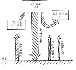 特征和地面覆盖等。云雾、水汽和风能强烈吸收和反射地面发出的长波辐射,使大气逆辐射增大,因而使地面有效辐射减少;空气密度、水汽、尘埃随海拔高度增加而减少,大气逆辐射相应减少,有效辐射增大;起伏、粗糙的地表比平滑表面辐射面大,有效辐射也大;导热性差的物体如森林枯枝落叶等覆盖地面时,可减少地表土壤的有效辐射。
