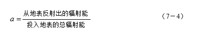 太阳辐射到达地面后,一部分被地面反射,地面性质不同,其对辐射能的反射率也不一样。以a表示反射率,则