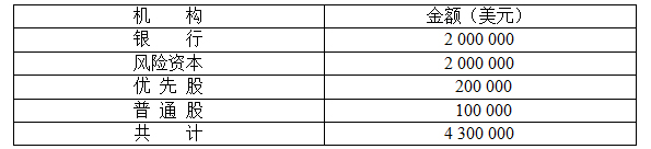 如果投资结构复杂,你需要在最后作一下说明。譬如,你可能投资于普通股,而有一位朋友投资于优先股。现在你试图从一家风险投资公司那里得到债务融资。可能还有一家银行向你发放了贷款。在这种情况下,结构可能是这样的: