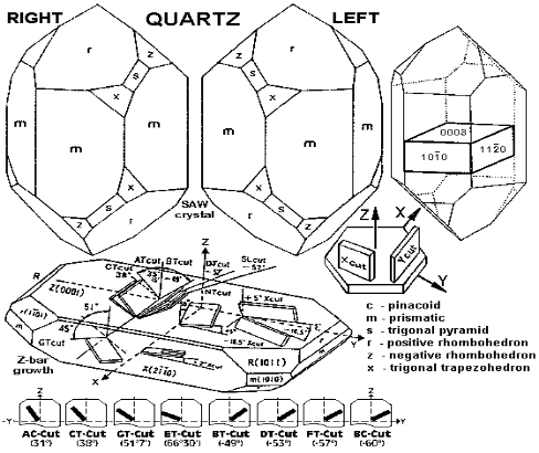◎ 以石英为例,理想石英外形:分为左旋石英和右旋石英晶体成分:SiO2