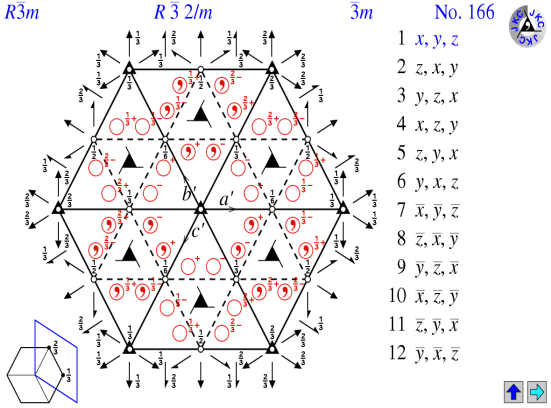 ◎ 晶轴。三角晶系和六角晶系的特点是具有一个三次旋转轴或六次旋转轴。通常都是选三次轴或六次轴为c轴,选二次轴或对称面的法线为a、b轴。晶格常数大小为:a=b≠c,晶轴之间夹角为α=β=90°,γ=120°。