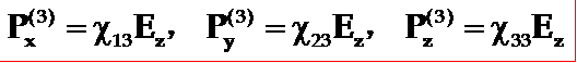 ◎ 同理,在介质的y、z方向,分别受到电场Ey或Ez的作用时,产生的极化强度分量为: