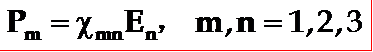 ◎ 当介质受到任意电场E(Ex、Ey、Ez)的作用时,介质中产生的极化强度P(Px、Py、Pz)与E之间的关系为:
