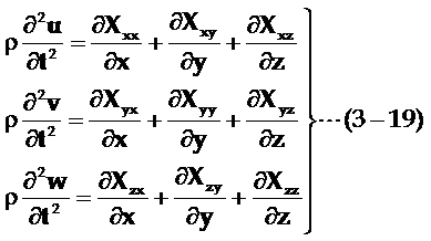 把(3-12)、(3-18)代入上式,原则上就得出波的传播方程式,从而解出位移三个分量u、v、w。