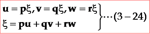 显然,P的位移分量u、v、w依赖于(即质点的位移)波的传播方向l、m、n,所以可以把(3-18)式改写为: