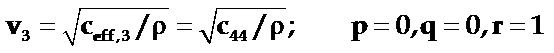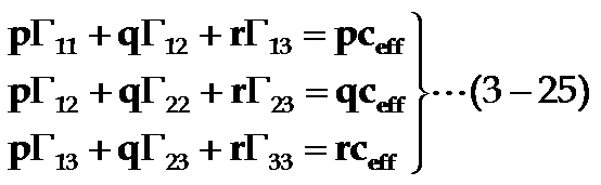 对于这三个波,质点分别有相应的三个位移,把由久期方程 (3-26)式求得的ceff,i代入到有效弹性常数(3-25)式,即可解出与ceff,i对应的位移的方向余弦pi、qi、ri。