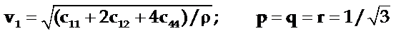 当j沿[111]方向时,l=m=n=1/ ,三个弹性波为: