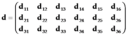 对于一般的情况,例如属于三斜晶系1(C1)点群的压电晶体是完全各向异性的,独立的压电常数共有18个,用矩阵表示即为: