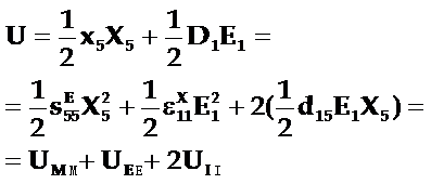 设有压电常数d15≠0的x切割的晶片,电极面与x轴垂直,若此晶片只受到切应力X5以及电场强度E1的作用。在此情况下选X5、E1为自变量,第一类压电方程组为: