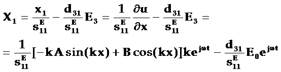 为了得到薄长片压电振子的波动方程,就需要根据压电方程组中应力与应变的关系式: