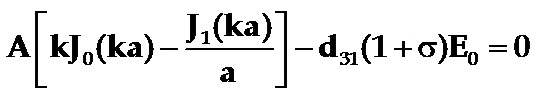 由于圆片中心为节点,Y1在r=0点发散,所以B=0。