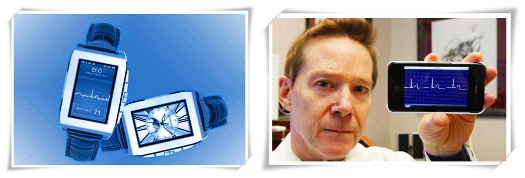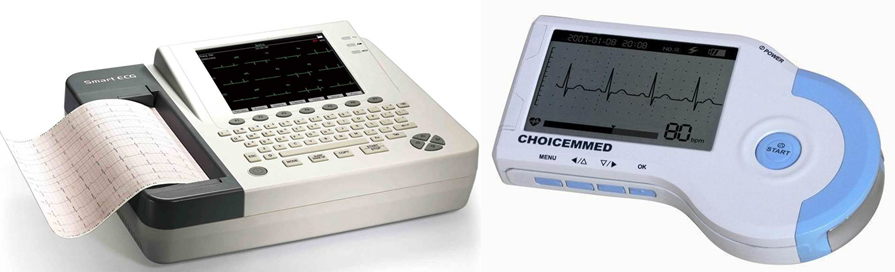 图中显示了现在的几种心电图机,可以同时记录12导心电信号。