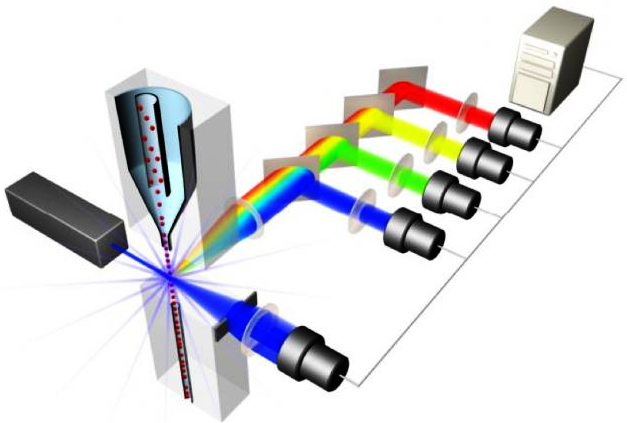 流式细胞仪是对细胞进行自动分析和分选的装置。它可以快速测量、存贮、显示悬浮在液体中的分散细胞的一系列重要的生物物理、生物化学方面的特征参量,并可以根据预选的参量范围把指定的细胞亚群从中分选出来。多数流式细胞计是一种零分辨率的仪器,它只能测量一个细胞的诸如总核酸量,总蛋白量等指标,而不能鉴别和测出某一特定部位的核酸或蛋白的多少。也就是说,它的细节分辨率为零。