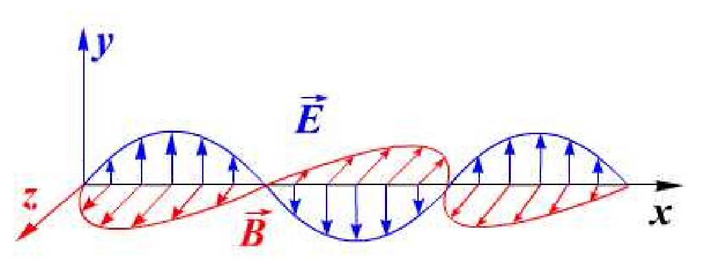 电磁波是由同相振荡且互相垂直的电场与磁场在空间中以波的形式移动,其传播方向垂直于电场与磁场构成的平面,有效的传递能量和动量。电磁辐射可以按照频率分类,从低频率到高频率,包括有无线电波、微波、红外线、可见光、紫外线、X射线和伽马射线等等。电磁波向空中发射或泄露的现象,叫电磁辐射。