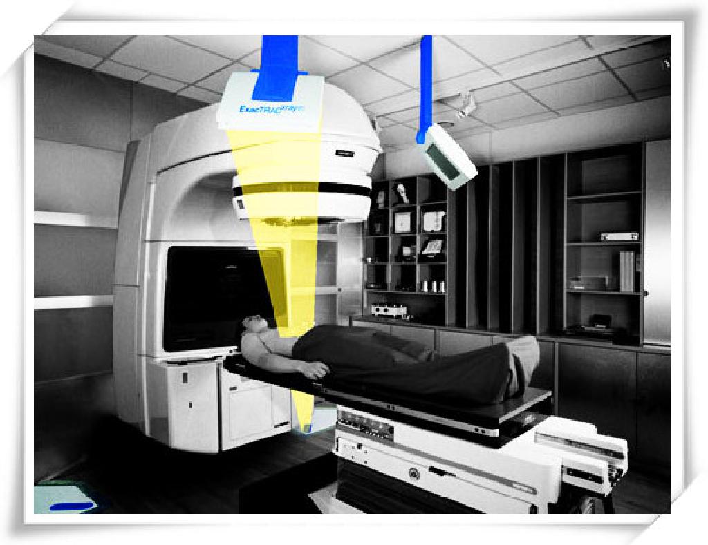 在CT图像引导下,利用三维立体定向原理将直线加速器产生的高能X射线从空间三维方向上聚焦集中照射到病灶的一种新技术,由于X射线能够准确的按照肿瘤的生长形状照射,使肿瘤组织和正常组织之间形成整齐的边缘,像用手术刀切除的一样,故称为“X-刀”。是一种立体定向放射治疗技术。主要用于各器官、组织肿瘤的放射治疗。