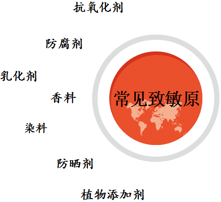 化妆品中所含的不纯石油分馏产品、某些染料及有光感性的香料等。