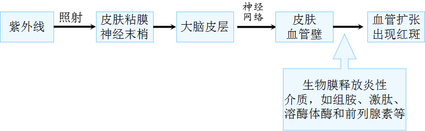 在紫外辐射引起的多种生物学效应中,紫外线是一种重要的氧化应激因素,通过产生氧自由基来造成一系列组织损伤,如皮肤红斑、皮肤黑化、皮肤光老化和DNA损伤等。在漫长的生物进化过程中,机体内也形成了一套完整的抗损伤修复体系或抗氧化防御体系,在受到紫外辐射后能够清除或减少氧活性中间体,从而阻断或减缓组织的损伤。