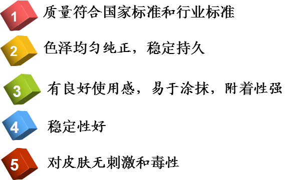 彩妆类化妆品的原料分为制作基质原料和主要原料。制作基质的原料有油、脂、蜡等油性原料,乙醇、多元醇、水溶性高分子等水性原料及表面活性剂等。