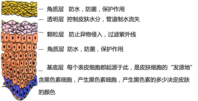 1.表皮的结构与各层的功能: