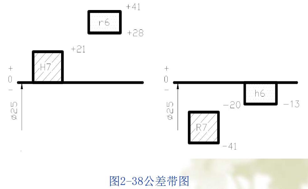 (4)H/f配合多用于IT6~IT8级的一般转动配合。当温度影响不大时,被广泛用于普通润滑油(或润滑脂)润滑的支承。推荐的配合为H8/f7