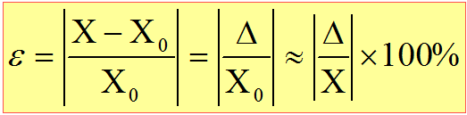 若用X表示测量结果,X 0表示被测量真值,Δ表示绝对误差,则:Δ= X-X 0