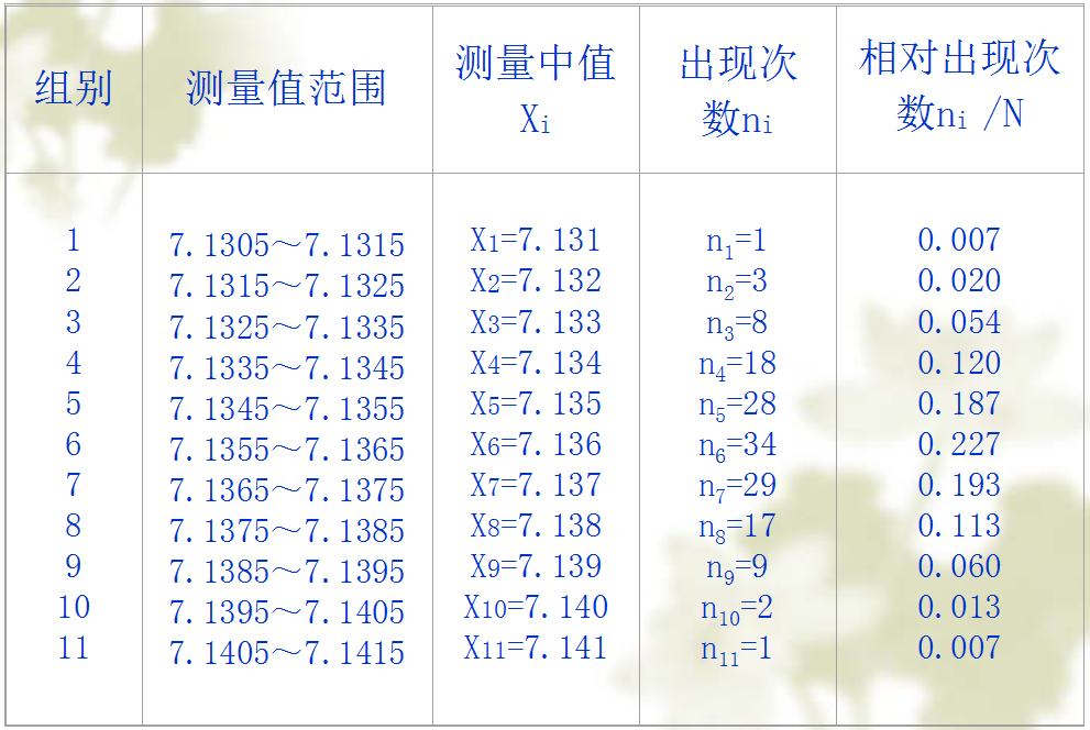 设用立式测长仪对同一零件的某一部位用同一方法进行150次重复测量,然后将150个测得值按尺寸大小分组列入表3-3中。