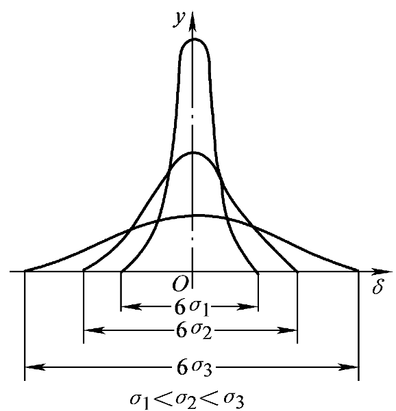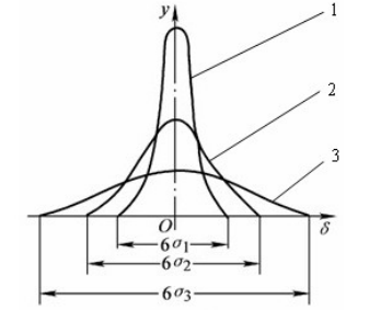 图3-6表示三种不同标准偏差的正态分布曲线,即σ1<σ2<σ3。