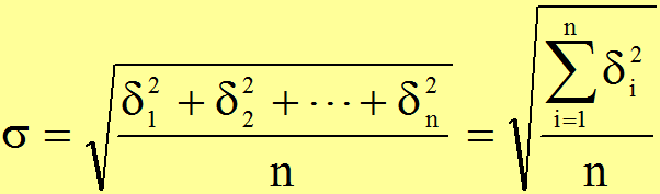 由概率论可知,标准偏差为各随机误差平方和的算术平均值的平方根,即按下式计算: