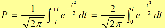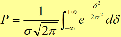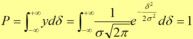 若把整个误差曲线下包围的面积看作是所有随机误差出现的概率之和P,便可得到下式: