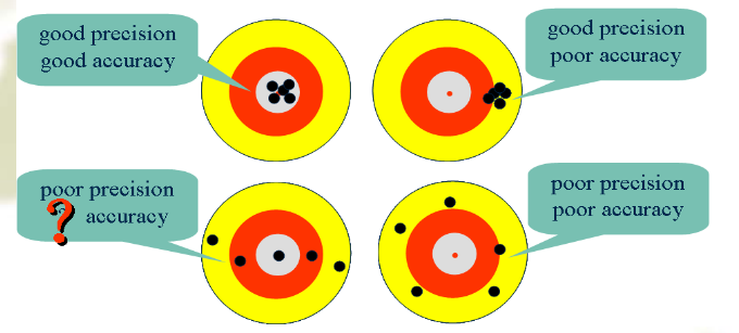 一般说来,精密度高而正确度不一定高,但精确度高,则精密度和正确度都高。
