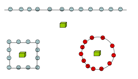 你认为下面哪种队形对每个人都是公平的?为什么?