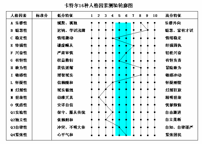 剖面图是将测验分数的转换关系用图形表示出来。从剖面图上可以很直观地看出被试在各个分测验上的表现及其相应的位置。