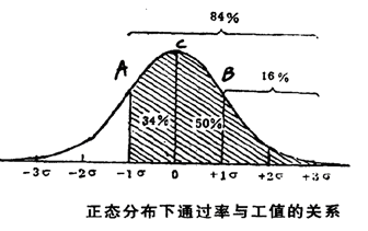 某项目B通过率为16%(P=0.16)则这个项目的难度为+1σ。