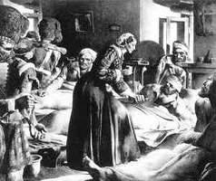 1853年,英法等国与俄国爆发了克里米亚战争。战争开始时,英军的医疗救护条件非常低劣。伤员死亡率高达4 2%。当这些事实经报界披露后,国内哗然。南丁格尔应英政府的函请,率领38名护士奔赴前线。她凭着理想与抱负,在前线独自开拓现代护理事业。对于当时一位35岁的女性而言,这是一种非常艰巨的挑战。当时,在欧洲各先进国家早有被称为“姊妹 ”(Srsters)的女护士出现,但英国由于受宗教和社会的成见,一直反对在医院特别是战地医院中有女护士出现。因此,过去军队中从无女性护士服务。南丁格尔在前线充分显示了她各方面的才能。她利用自己的地位和声望,冲破了军事当局的重重障碍。拿出自己的3万英磅为医院添置药物和医疗设备并重新组织医院,建立改善伤员的生活环境和营养条件,整顿手术室、食堂和化验室,很快改变了战地医院的面貌,只能收容1700名伤员的战地医院经她安排竟收到3000~4000名伤员。在这里,她的管理和组织才能得到充分发挥。6个月后,战地医院发生了巨大的变化,伤员死亡率从42%迅速下降至2%。这种奇迹般的有目共睹的护理效果震动了全国,同时改变了英国朝野对护士们的估价并提高了妇女的地位,护理工作从此受到社会重视。护理工作的重要性亦为人们所承认。同时,为妇女开辟和创建了一个崇高的职业。南丁格尔为此付出极大的精力和心血,她建立了护士巡视制度,每天夜晚她总是提着风灯巡视病房,一夜