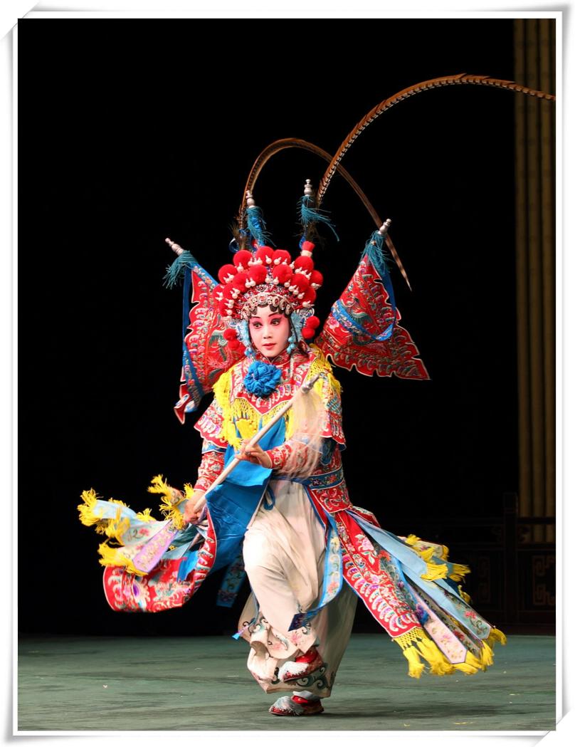 (3)身体动作刚中有柔,柔中有刚。指演员在动作时身体各关节在旋转过程中看外形很柔美,实际在亮相时各部分关节是紧绷的和很有力的。