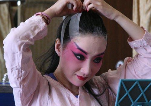 ③梳扎化妆 按角色类型,分别梳大头、抓髻头、旗装头、古装头、彩旦头