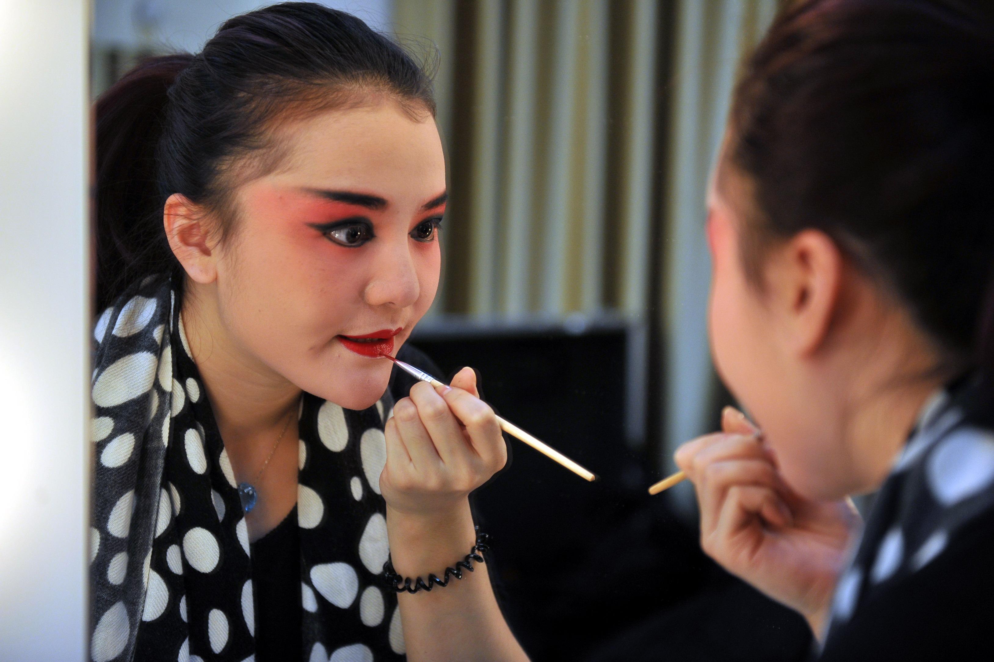 1、旦角演员化妆,要结合自己的脸型精心设计,用片子和油彩为自身“扬长避短”,通过化妆使人物更加靓丽,更加突出人物性格。