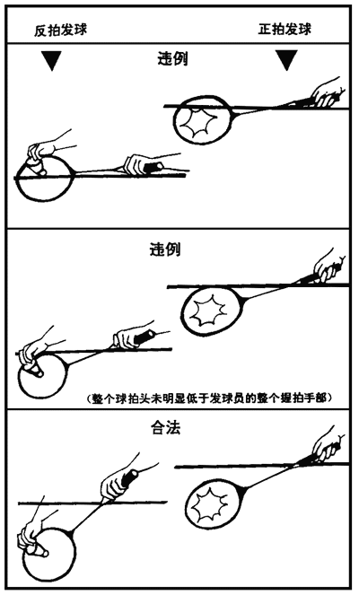 过手 过腰 连续击球 发球前脚触线 击球点不在球托上