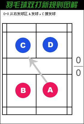 1、发球员的分数为0或双数时,双方运动员均应在各自的右发球区发球或接发球。