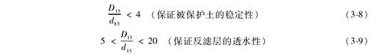 为了满足上述反滤层的要求,反滤层相邻两层之间的颗粒级配应符合下列条件: