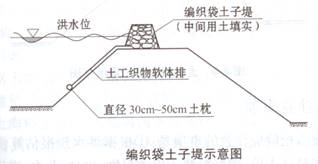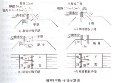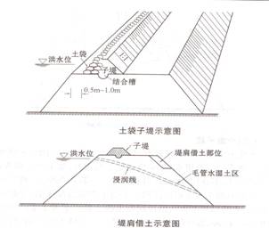 (三)抢护原则:对这种险情的抢护原则主要是“预防为主,水涨堤高”。当洪水位有可能超过堤(坝)顶时,为了防止洪水浸溢,应迅速果断地抓紧在堤坝顶部,充分利用人力、机械,因地制宜,就地取材,抢筑子堤(捻),力争在洪水到来之前完成。