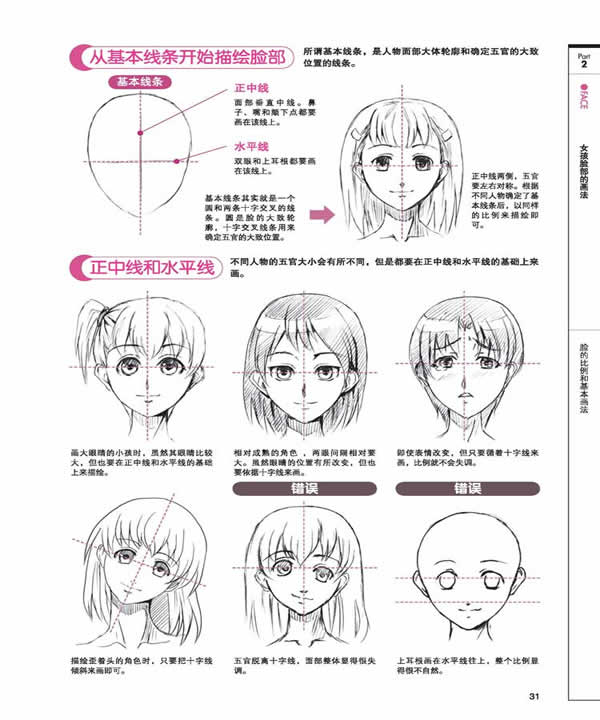 头部包括头形和面形。头部可以归类成圆球形、圆锥形、梨形、三角形、葫芦形、椭圆形、四方形、豌豆形、瓜子形、花生形等。对基本形进行变化,可以得到更多的变化。