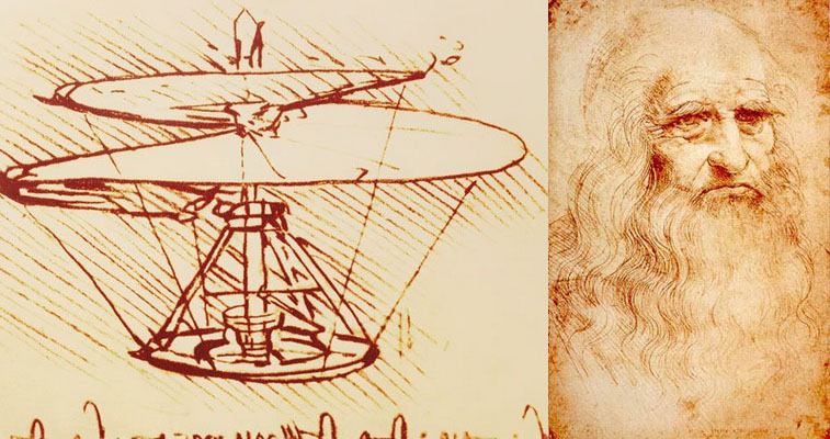 15世纪80年代,达芬奇率先对人类飞行的可行性进行严肃研究,相关素描超过100幅,其中的扑翼机素描成为现代直升机设计的基础。