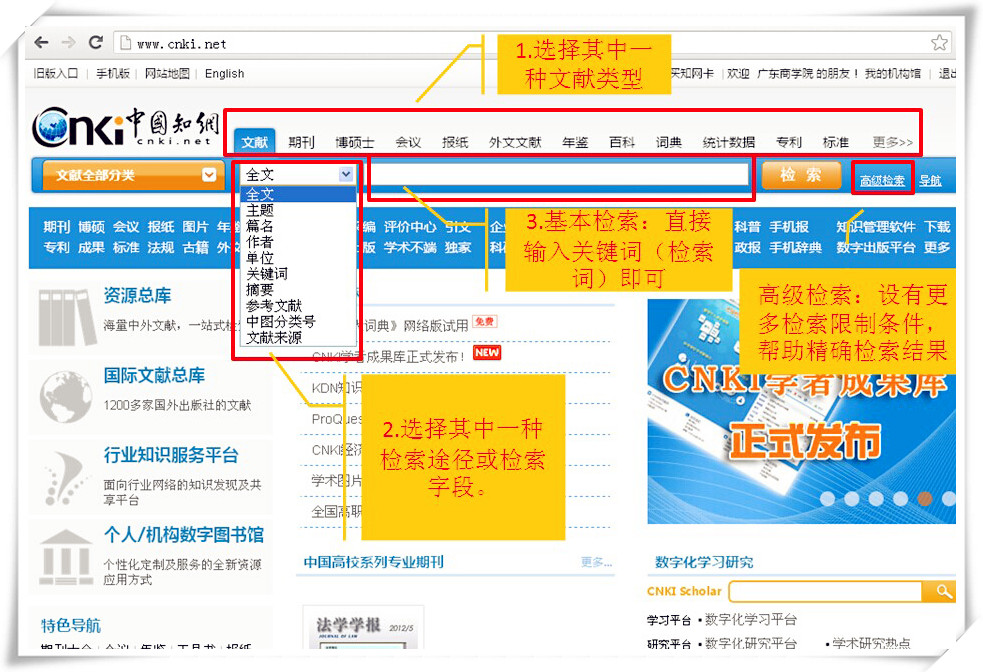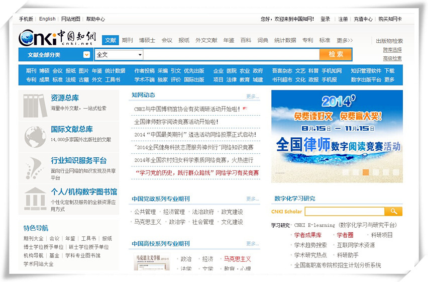中国知网主界面: